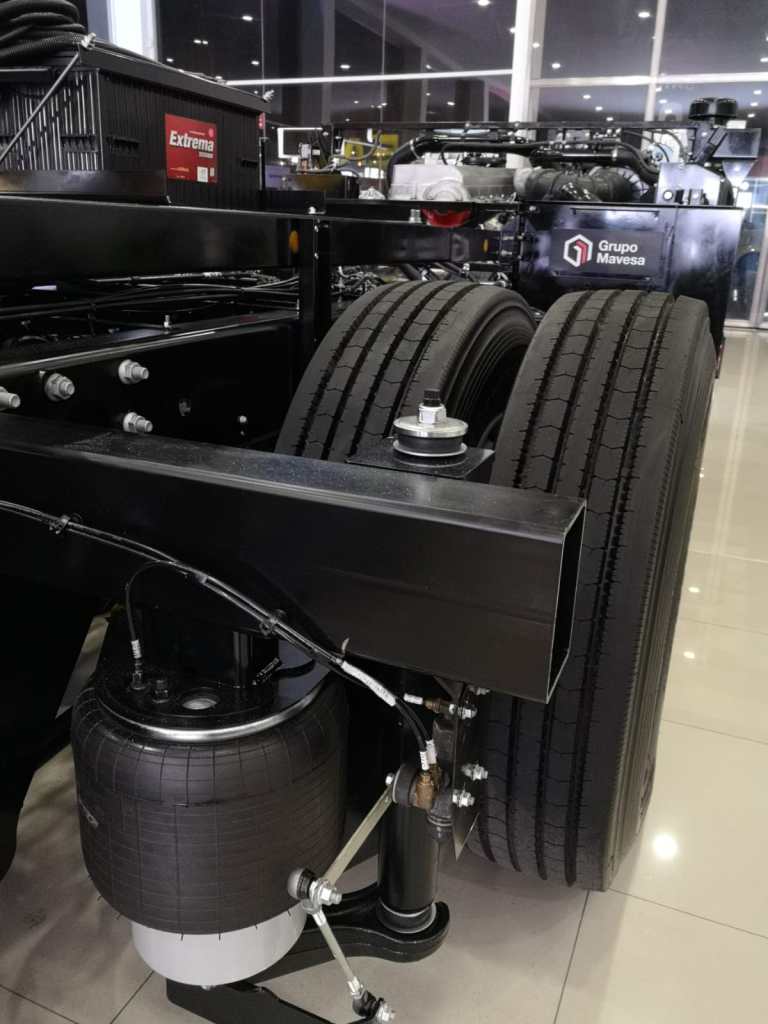 Cumple con la norma de emisiones Euro 3, recordemos que Ecuador tiene una política ambiental menos exigente y depende también de garantizar un adecuado suministro del combustible de ultrabajo azufre para que existan versiones más respetuosas con el medio ambiente. La transmisión sí es manual de origen ZF con 6 marchas adelante, frenos de tambor en ambos trenes con ABS de serie y retarador también incluido desde fábrica.