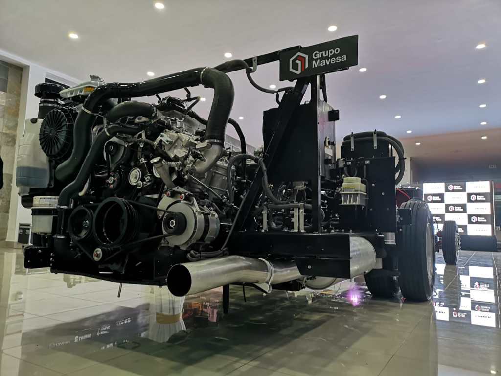 Lo propulsa un motor diésel Hino de la familia EC13C de 12.913cc de desplazamiento, 6 cilindros, turbocargado y con intercooler. La alimentación se hace a través del sistema common-rail provisto por los especialistas de Denso. Entrega 405HP de potencia entre 1.600 y 1.800 rpm, además de los 1.862Nm de torque con una amplia gama de uso entre 1.000 y 1.500 vueltas.