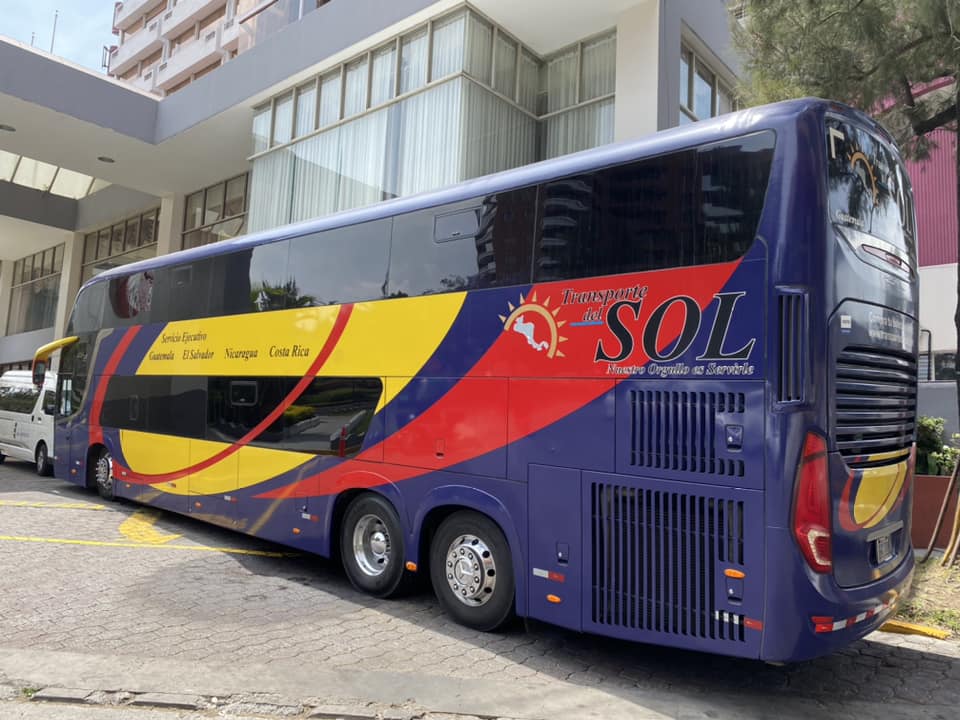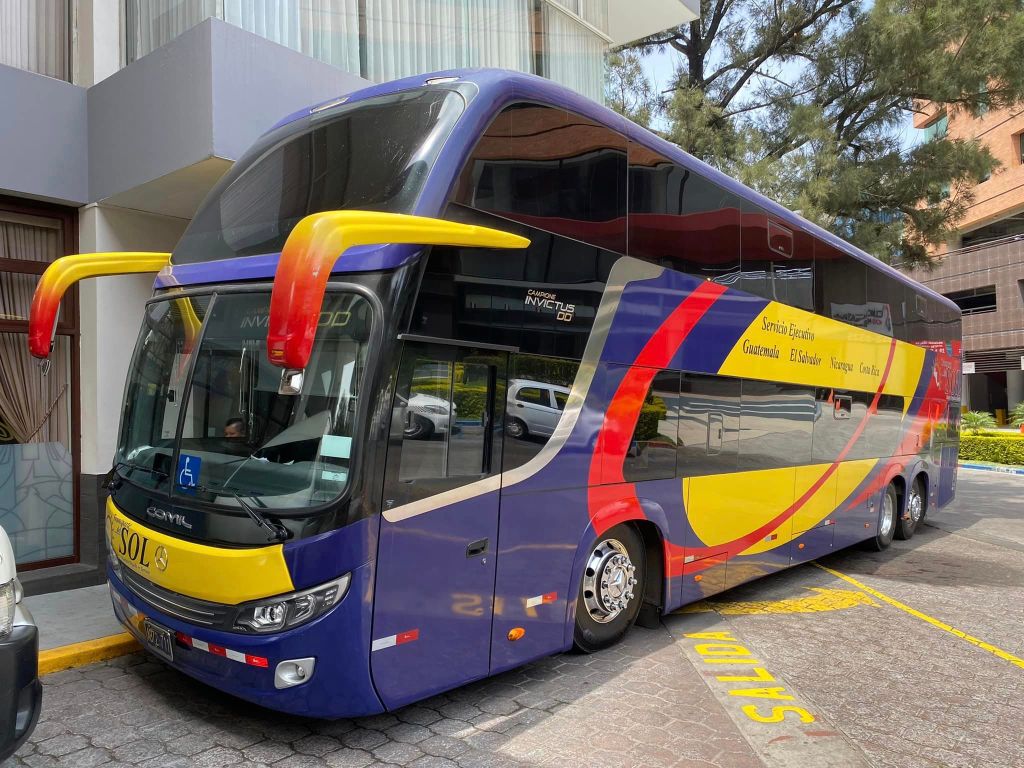 Acceder a un tiquete internacional y comprar en línea es relativamente fácil. Este tipo de servicios no salen desde una terminal de transporte, sino desde paradas privadas, generalmente ubicadas en hoteles de lujo del sector más comercial de ciudad de Guatemala. Allí optamos por la opción más completa (pagando 45 dólares, unos 220.000 pesos colombianos por el viaje de una sola vía), en el primer piso de un Comil Campione Invictus DD, equipado con 12 poltronas en la planta baja y 44 en la cubierta superior.