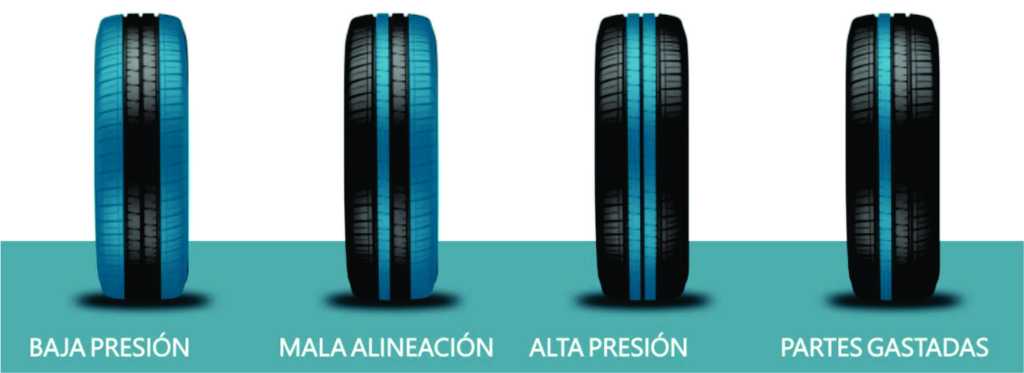 La falla en los elementos de suspensión como bujes, terminales o rótulas puede producir surcos en la banda de rodamiento.