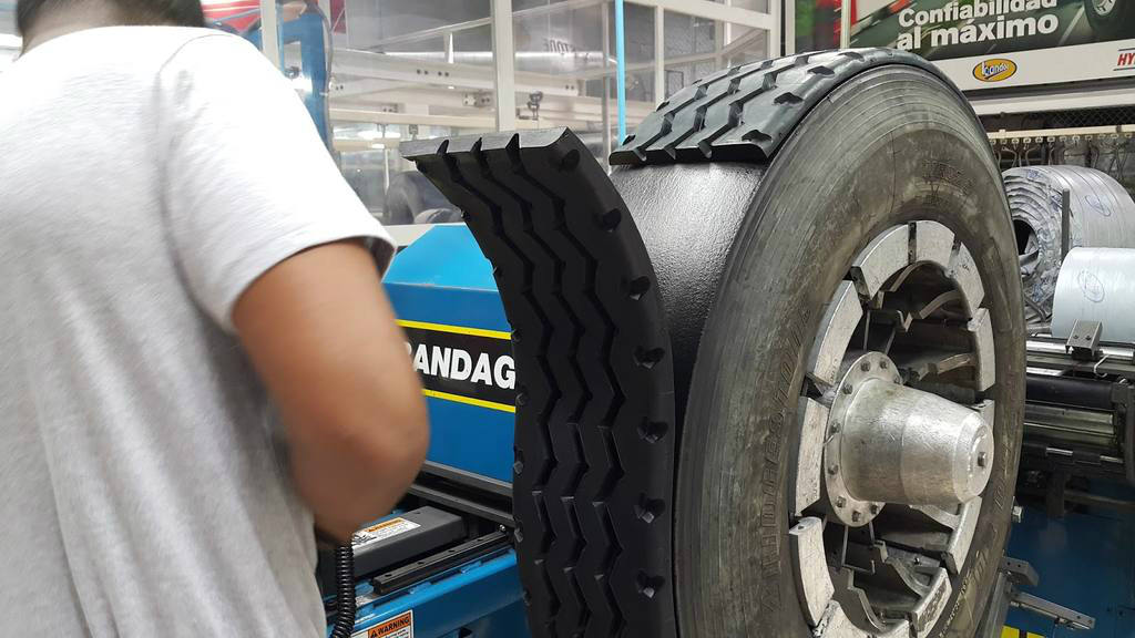 En este momento, la llanta está lista para recibir su nueva banda. De estas, así como proveedores de servicio, hay gran variedad de fabricantes y diseños. Esta es una de las ventajas del proceso, que aumenta la modularidad y flexibilidad de ajuste a las necesidades del cliente.