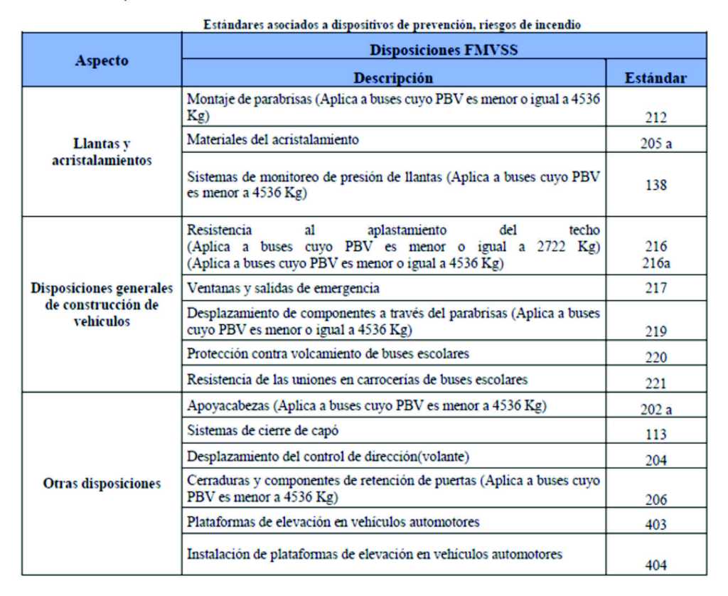 Reglamentos asociados a prevención de incendios, sistemas de propulsión, llantas y acristalamiento (vidrios).