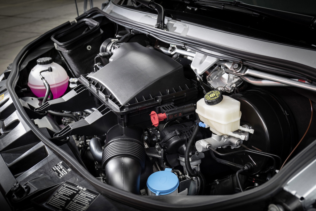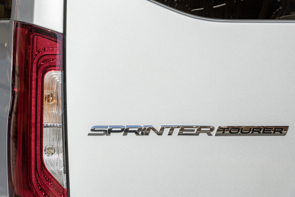 Esto se resalta en el pilar B, que tiene la forma de una aleta ahusada, así como el borde plateado del parabrisas superior. Otras áreas compensadas en negro, como el difusor trasero y el borde de las placas de matrícula, de manera óptima coincidir con los nuevos faros “ojos de ángel” y los balancines pintados debajo de los faros. A modo de un “efecto sorpresa” adicional, la nueva “edición especial de platino” viene equipada con nuevos tapacubos dinámicos por primera vez, esto le da un aspecto de bus veloz y poderoso, incluso estando detenido