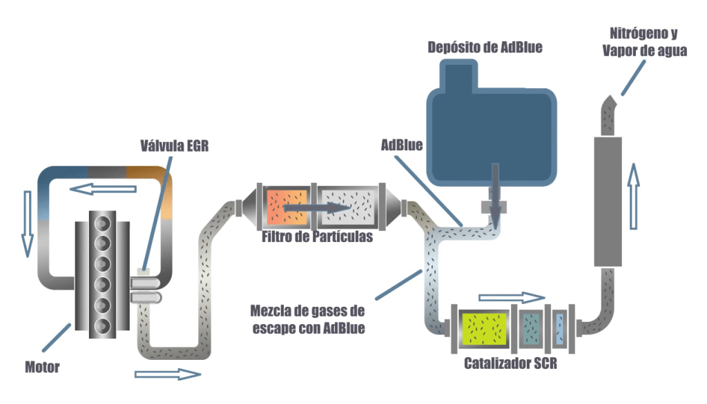 Hasta aquí estamos a la mitad del proceso, porque tenemos el lugar donde se producirán esas reacciones, pero se necesita también el compuesto que ayudará a convertir las sustancias peligrosas, liberando gases inocuos. Ese aditivo es el que se conoce como AdBlue (una marca registrada), en otros mercados le llaman DEF (Fluido para sistemas de escape a Diésel) pero que genéricamente se le llama úrea.