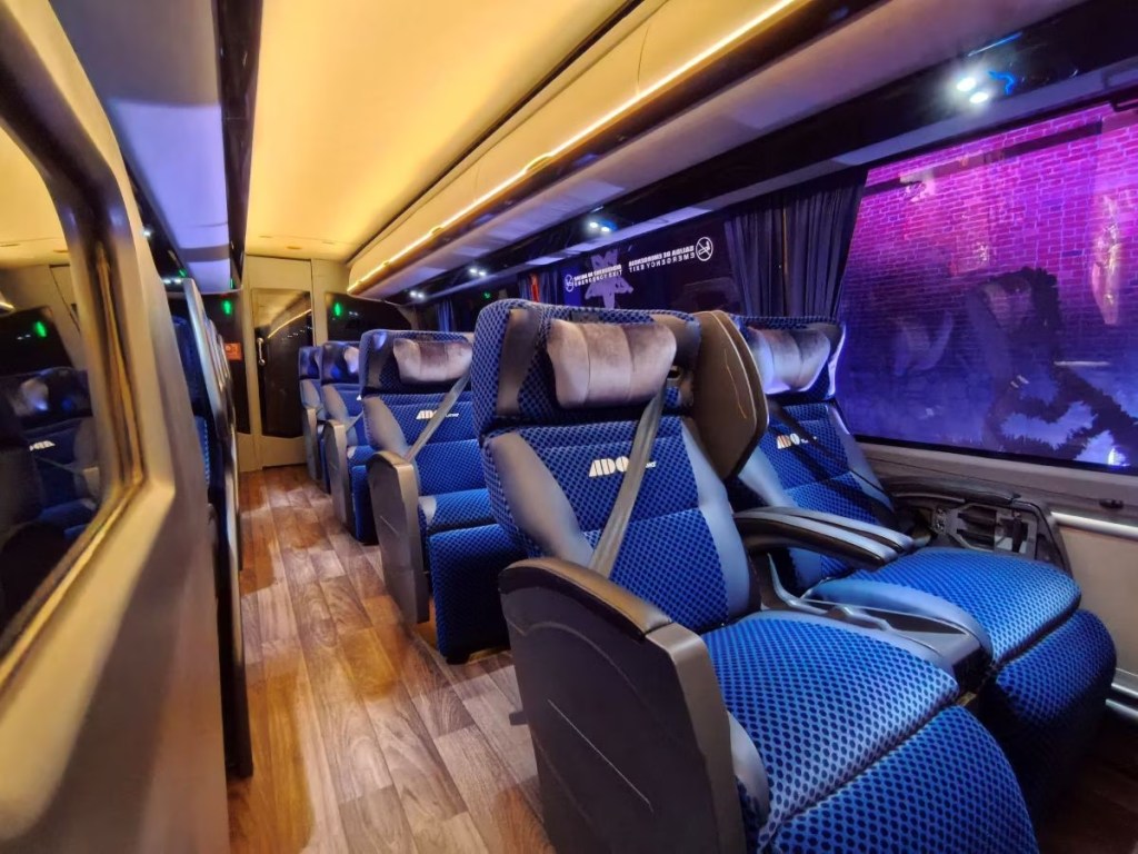 Los autobuses Platino ofrecerán Wi-Fi satelital, pantallas individuales, puertos USB tipo A y C, conexiones de 110V y asientos ergonómicos con soporte lumbar, garantizando un viaje de alto nivel.