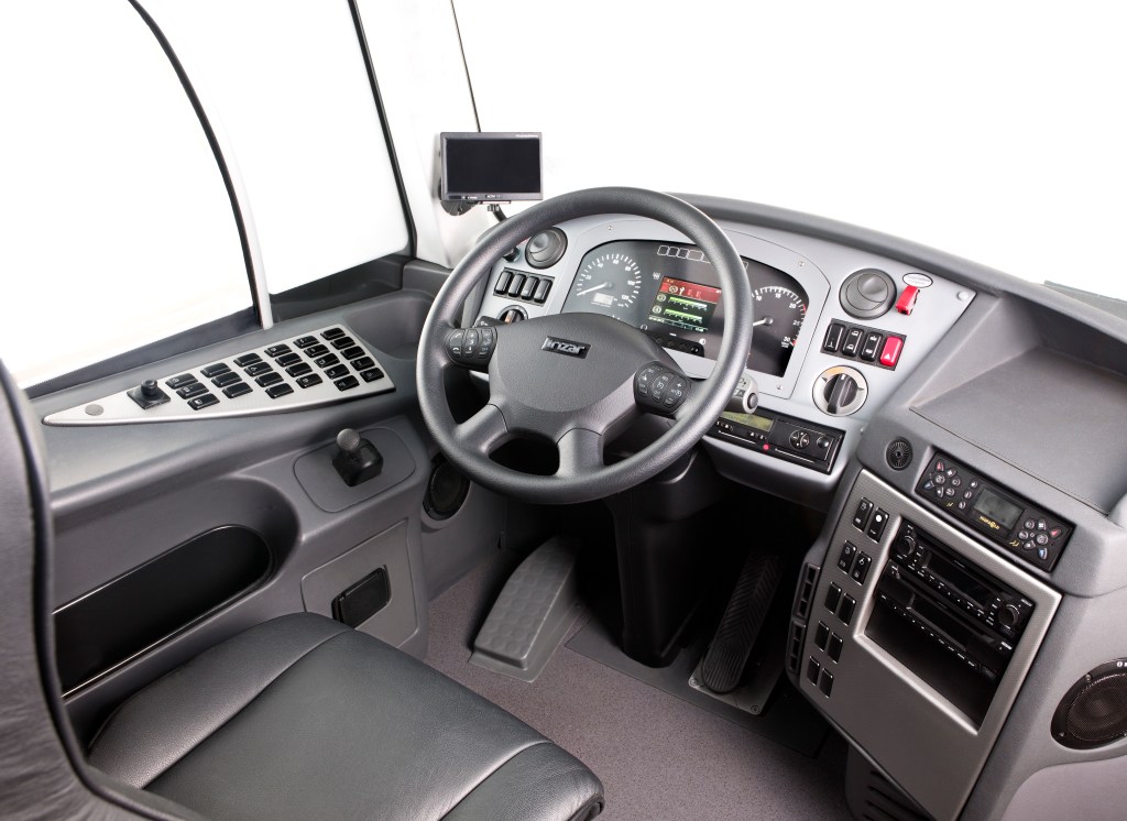 El puesto de conducción también cuenta con el nuevo volante con unos detalles cromados y distribución de instrumentos completamente rediseñado, visto a finales de 2019 y que le dará más facilidad a los conductores para estar al tanto de lo que sucede con el autobús y brindarles un ambiente más actualizado en sus puestos de mando.